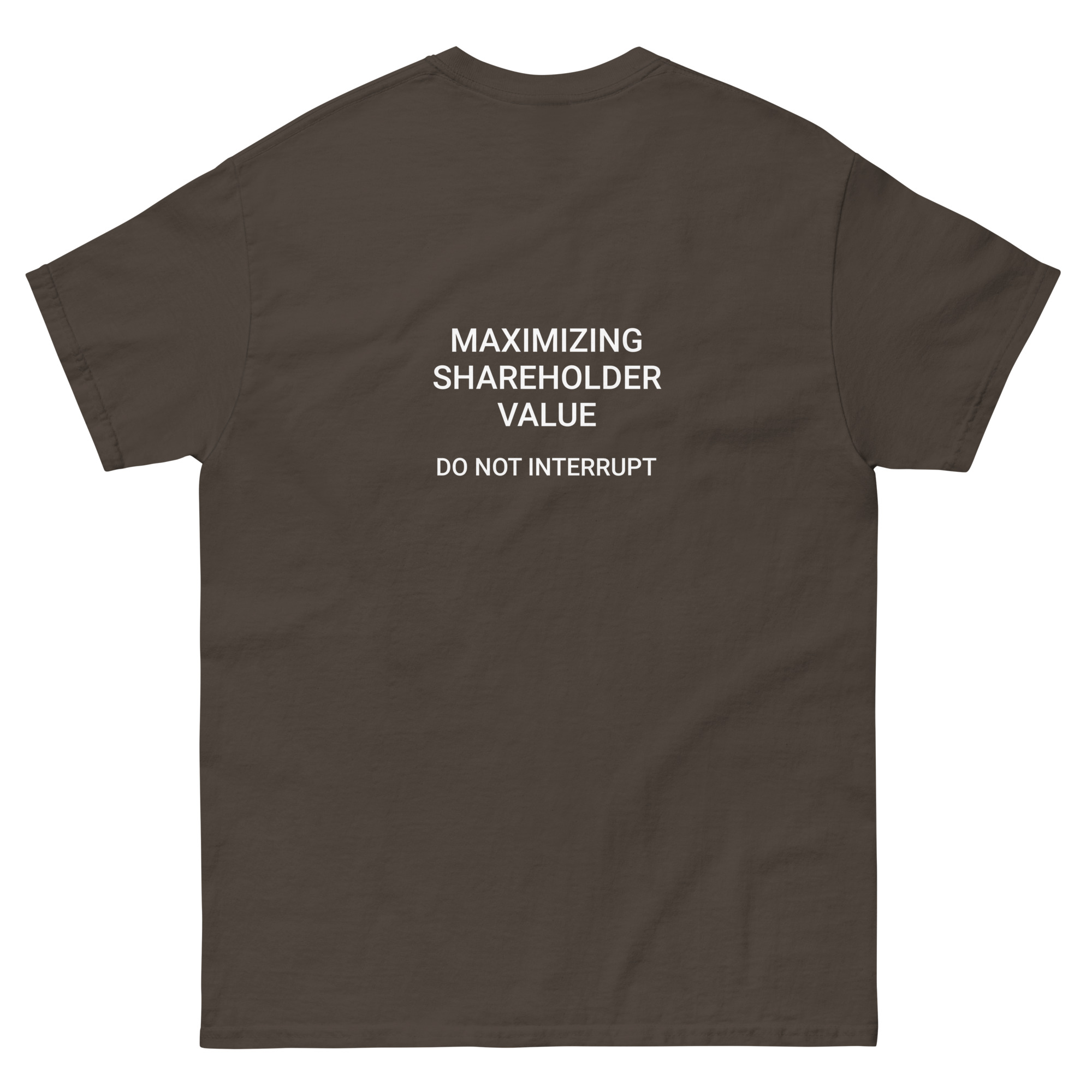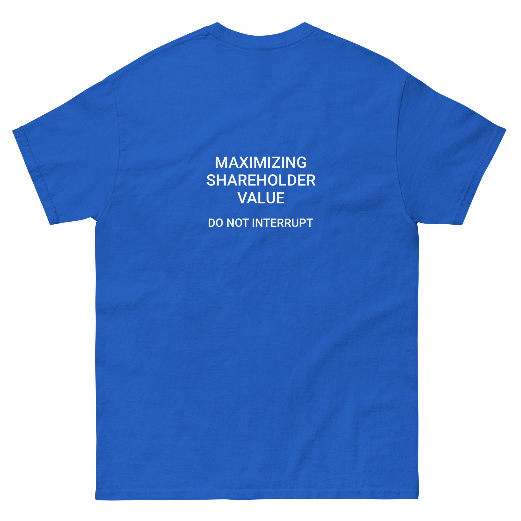 Maximizing shareholder value, do not interrupt printed t-shirt